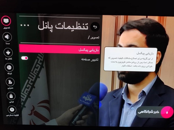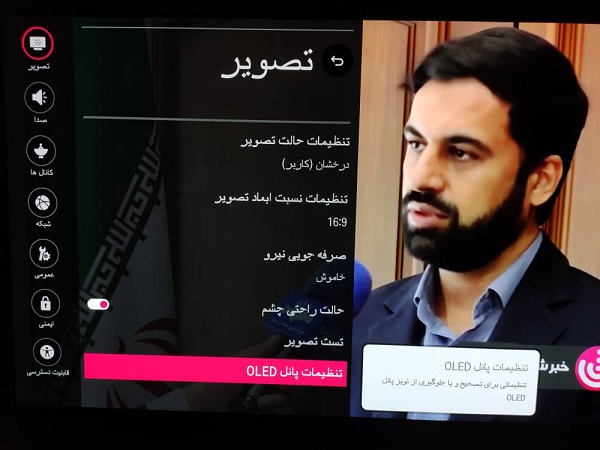 مواقعی که ناخواسته برق قطع میشودجهت جلوگیری ازحک تصویربایدبعدازوصل شدن برق وارد تنظیمات تصویرشده وازتنظیمات OLEDگزینه pixle refreshing را فعال نماییدتابعدازاولین خاموش شدن دستگاه به مدت یک ساعت عمل رفرش راروی پیکسل ها انجام دهد.